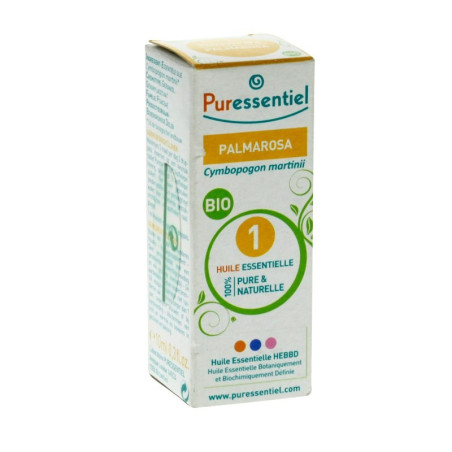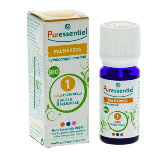 L'Huile Essentielle de Palmarosa Bio Puressentiel est la plus adaptée aux problèmes de peau en général. Peu connue, son parfum est pourtant doux et fin, rappelant celui de la rose.