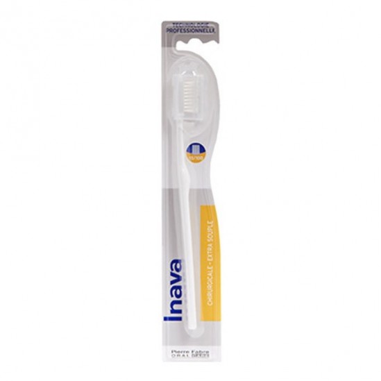Inava CHIRURGICALE 15/100 est une brosse à dents adaptée à un retour progressif au brossage normal après une intervention chirurgicale de la bouche. Elle s'utilise en relais de la brosse Inava POST OPÉRATOIRE 7/100, pendant les 2e et 3e semaines suivant la chirurgie.