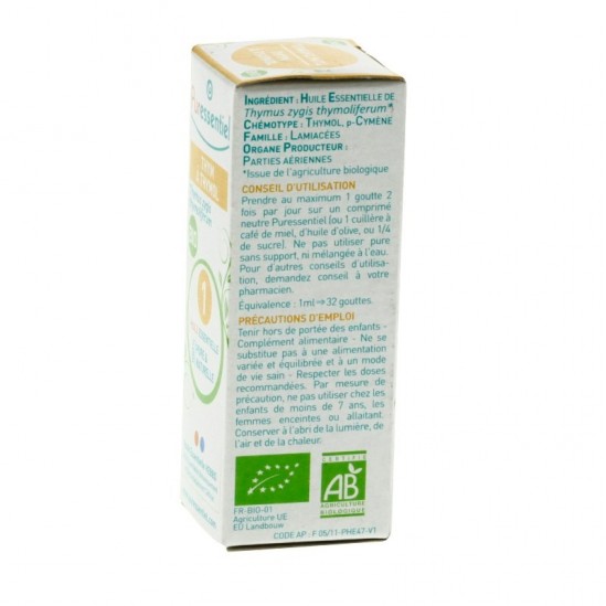 L'Huile Essentielle de Thym à Thymol Bio de Puressentiel possède des propriétés :