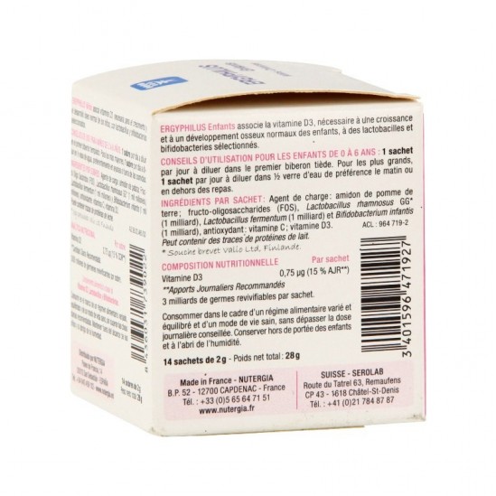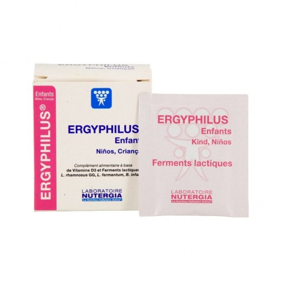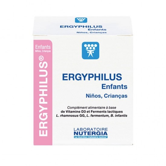 Ergyphilus Enfants associe 3 souches aux bénéfices reconnus pour favoriser l'équilibre de la flore intestinale de l'enfant dès la naissance.