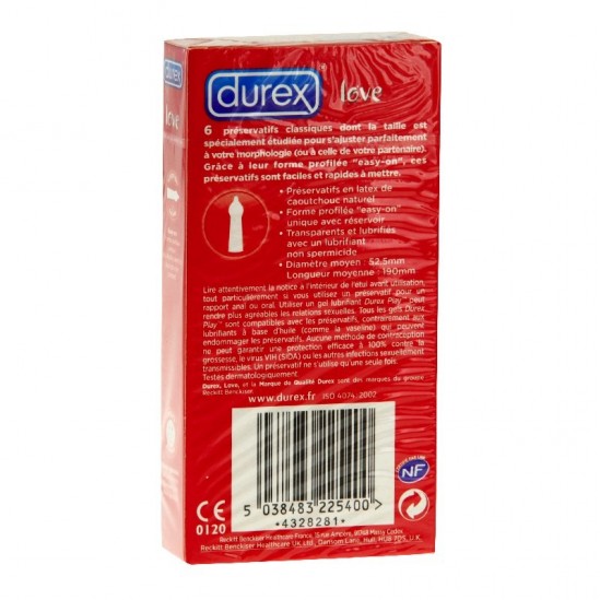 Les préservatifs Durex Love ont été conçus pour votre plaisir et pour garantir toute la sécurité et la protection que vous exigez. Désormais, les préservatifs Durex Love ont une taille spécialement étudiée pour s'ajuster parfaitement à votre morphologie (ou à celle de votre partenaire).