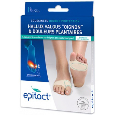 Vous avez aussi des douleurs plantaires sous le pied ? Les coussinets double protection EPITACT® ont été développés pour soulager les deux zones, l’hallux valgus (oignon ) et sous l’avant-pied !